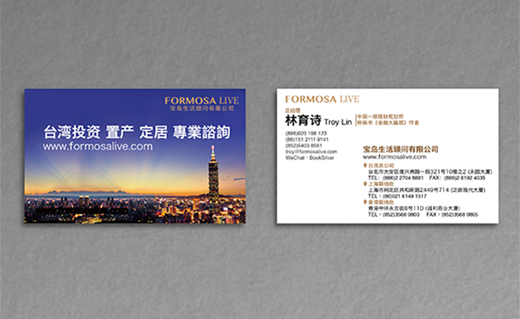 投資仲介公司品牌以吸引亞洲投資者為主,結合投資與旅遊資訊,期望吸引亞洲投資者,利用完整網站內容介紹台灣風光,以及台灣投資流程,另外,製作相關傳單與手冊的設計,搭配來台觀光參訪時使用。