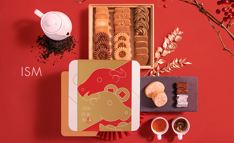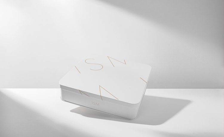 Pâtisserie ISM 主義甜時2021禮盒鐵盒包裝設計,以日本文化漆器木盒的連續圖案設計為概念,設計成盒面正面連續商標的呈現方式,並以極簡的視覺設計,使鐵盒可以符合各種節慶活動中使用,攝影上特別強調品牌的日本美學「Wabi-sabi 侘寂」,所以希望利用光影來表現,並探索如何在沒有道具下,只利用光影讓畫面可以平衡與豐富?
