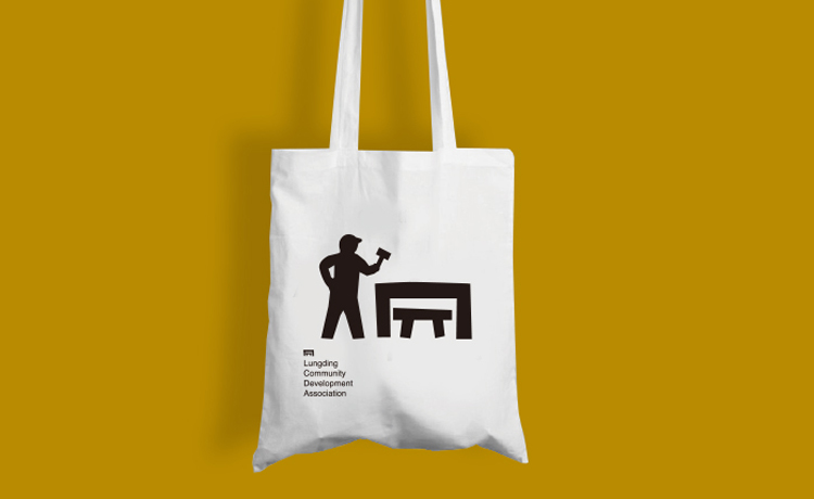 在屏東萬丹的崙頂社區發展協會,再利用當地知名的板凳工廠的角料做成其他的環保商品,並讓社區居民在工作坊中學習與參與製作,也與屏科大師生合作,提供技術教學與經驗傳承。在設計時,品牌希望能吸引更多當地年輕族群參與社區與工作坊,因此在設計上不使用工整與方格的方式去設計,改用手繪方式去呈現。