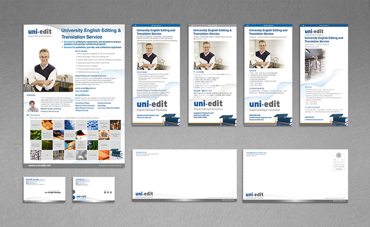 為了要呈現專業優秀語言技巧和研究, DM及名片設計上,以大量的文字來表現「語言專業」,再以色塊表現出翻譯所的「系統化」「高水準」, 另外,少部份穿插人像圖像,展現出「親近及人性」,讓品牌感覺更好接近。